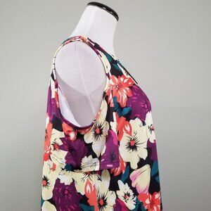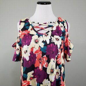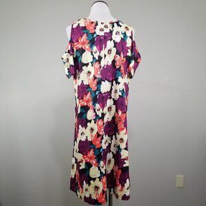 New Bluetime A Line Cold Shoulder Dress Womens L Jersey Knit Floral Tropical