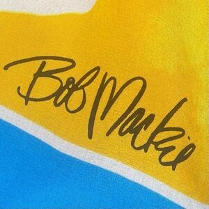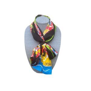 100% silk scarf made BOB MACKIE. This scarf is part of his "Wearable Art" Collection, so it was made in limited quantities. Beautiful print on lightweight silk crepe. Bob Mackie's signature is printed at the bottom corner.