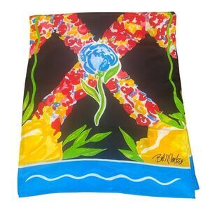 New Bob Mackie Wearable Art Silk Multi-Colored Floral Scarf/Wrap Limited Edition
