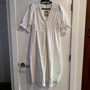 New Boden Broderie Midi Tea Dress White Eyelet Button Front Short Sleeve Sz 8