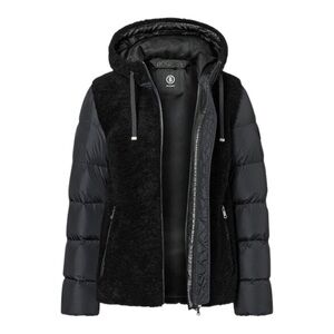 New! Bogner Chaqueta Tizia-dl In Black Shearling and Leather Hooded Jacket