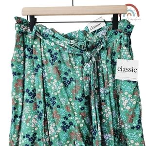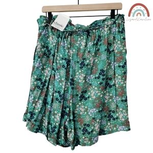 New! Bohemian Green Ditsy Floral Belted Soft Paperbag Shorts Plus Size 3X