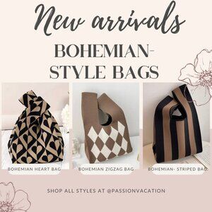 New Bohemians Bags. A collection that embodies the spirit of creativity and individuality, each bag is designed with unique patterns and textures that reflect a free-spirited lifestyle. Crafted from sustainable materials, these bags not only serve as functional accessories but also as a statement of eco-conscious fashion. Perfect for the modern wanderer, they offer ample space for essentials while maintaining a stylish silhouette. Whether you're heading to a music festival, a weekend getaway, or simply exploring the city, New Bohemians Bags are the perfect companion for those who embrace adventure and self-expression.