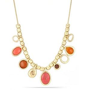 New! Artisan inspired natural gemstone and resin satin gold tone hammered statement necklace! Rich earth tones of coral, caramel and orange! Great year round necklace!