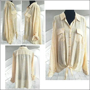 New Boho 2XL Butter Fall Yellow Tie Front Role Sleeve Button Down Tunic Top