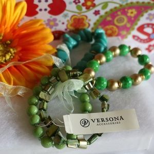 New! Boho Bracelets Stone & Bead Multi Stretch Set Gorgeous Multi Colored Set of Stretch Bracelets Ready to add a "Spark of Color" to any outfit! Lovely Mix of Stones & Beads! Beautiful Turquoise & Green Hues! 4 Separate Bracelets! Wow! Very "Hip & Chic!" These Won't Last Long! Get Them Now, Before They're Gone! Our jewelry is much higher quality than what you get overseas! Our pieces are often "One of a Kind" and have real substance and style! We Ship Fast! You'll love our Customer Care!