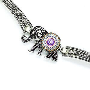 New Boho Elephant Rhinestone Silver-Tone Bracelet