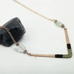 New Boho Gold Twine Wrapped Natural Stone Statement Necklace