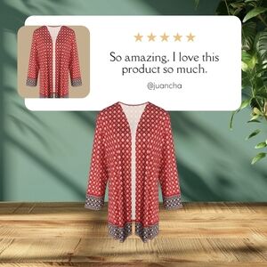 New! Boho Kimono Vest, Tribal Print, Lightweight, Open Front, Casual Size large
