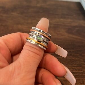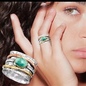 New Boho Style Turquoise Spin Ring with Gold Tone and Copper