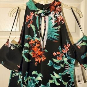 New -Bold Elements Black/Green/Red Multi-colored Floral Dress