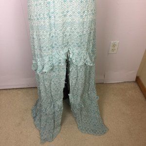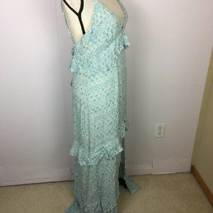 New!! Bonhomia Maxi Dress M Blue Teal V-Neck Low Back Ruffle Front Slit