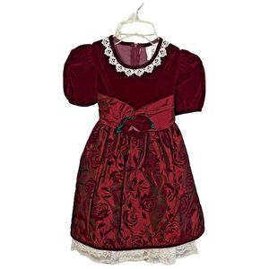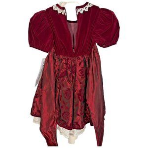 New Bonnie Jean Girls Velvet Dress Burgundy Taffeta Size 5 Lace Bow Holiday VTG
