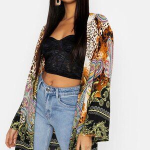 New Boohoo Beautiful Animal Print & Paisley Kimono sz medium