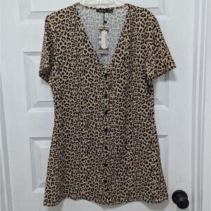 Boohoo Petite Leopard Print Button Shirt Dress Size 8. This is a fun lightweight dress.