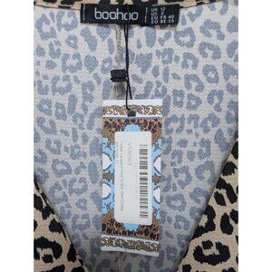 New Boohoo Petite Leopard Print Button Shirt Mini Dress Size 8