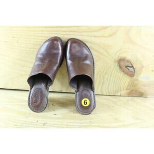 New Born Shoes Womens Sz 9 Brown Soft Leather 39 Mules Clogs Wedge Slip Ons