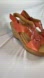 Step out in style with these chic coral leather wedge sandals. Perfect for any occasion, these sandals offer both comfort and elegance.