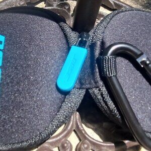 *New* Bose Earbuds Carrying Case - Padded with Zipper Metal Carabiner - inside mesh inset holds earbuds securely 3" Round Color: Black w/ turquoise accent.