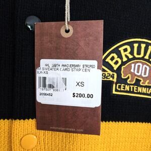 New Boston Bruins Mitchell and Ness Centennial Stripe Cardigan Sweater Size XS