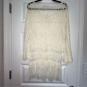 New, Boston Proper Crochet Daring Fringe Pullover Sweater