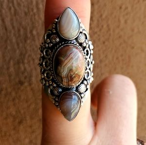 Brand New Handmade Botswana Agate Silver Statement Ring.