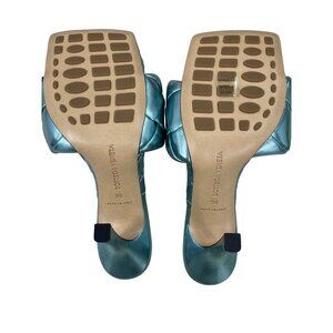 New Bottega Veneta $1500 Lido Icy Moon Blue Quilted Leather Heeled Mule Shoes 38