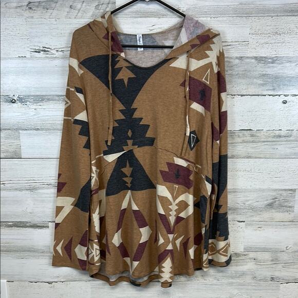 New Boutique Brand Southwest Aztec Soft Stretchy Pullover Hoodie Women’s Large