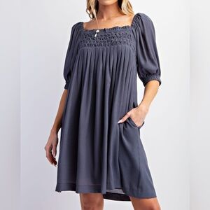 🔥🔥New Boutique Pleated Babydoll Poly Crepe Dress Faded Navy