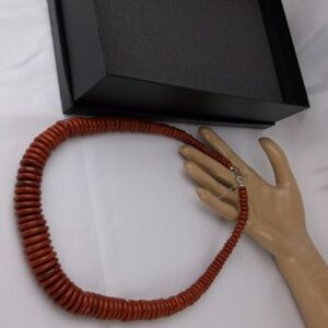 New Boxed Heavy Designer Sterling Silver Red Jasper Necklace 26"