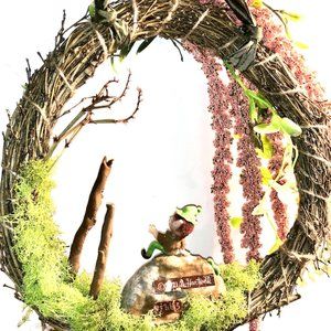 Hand made wreath, bamboo and polymer clay with artificial vibrant flowers. Small wreath is perfect for nursery, children's room any wall! Give as a gift to someone who needs a bit of magic and wonder in their life or day, a friend, or for yourself! This is all hand-made by me, my goal is to bring smiles, magic and wonder into peoples lives. One dollar from your purchase is donated to One Tree Planted, so you not only buy for yourself, but you can feel good about buying for the planet too!!! I donate at the end of each month. This Elf and his Caterpillar friend who if you look closely is sitting behind the little Elf on the rock and the Sticks n' Stones, are packaged in a sturdy white box with plenty of safety crinkles to keep them all safe during their travels to you.