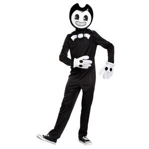 The product is a new boys Halloween costume featuring a bendy design, suitable for sizes 10/12 in size large. Made from polyester material, this black-themed costume is a complete outfit perfect for Halloween celebrations. The costume is from the brand Disguise and is manufactured in China, ensuring quality and authenticity. This rare find includes free shipping, making it a great deal for parents looking to outfit their children in a fun and unique Halloween costume.