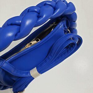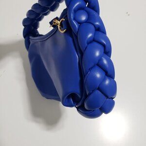 New Braided Handle Vegan Leather Hobo Bag in Blue