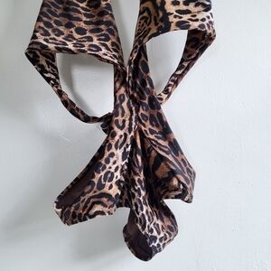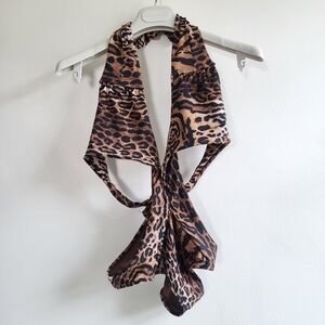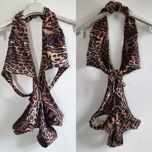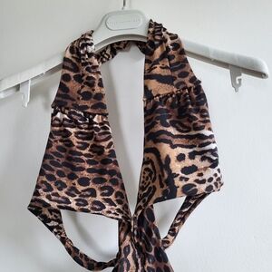 New Without Tag Brasini Swimwear Halter Front Deep V- Neckline Open Back Animal Print Monokini One Piece Swimsuit
