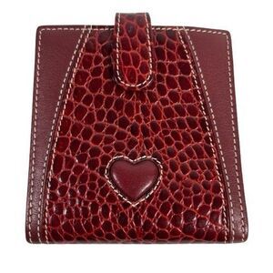 Brighton Moc Croc Leather Wallet Bifold Large Silver Heart Clutch Kisslock Burgundy / Maroon / Red. New without tags. Comes with the Brighton card. Please see pictures.