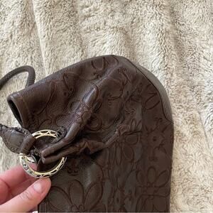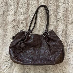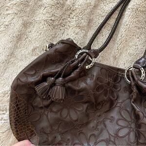 New Brighton Valencia Chocolate Brown Leather Embroidered Shoulder Bag