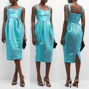 New Bronx And Banco Pleated Sequin Sweetheart Turquoise Midi Dress Large/8 US