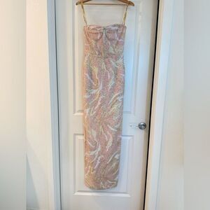 New Bronx and Banco Dahlia Strapless Maxi Dress in Blush Multi Pink