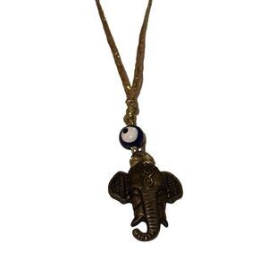 "New" Handmade Bronze Elephant Head Pendant Gold-tone Braided Cord Necklace Unisex OS
