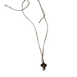 "New" Bronze Elephant Head Pendant Gold-tone Braided Cord Necklace Unisex OS