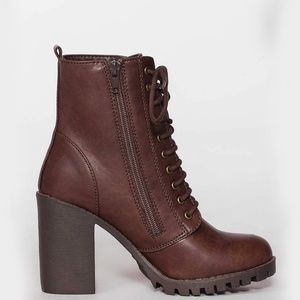 New Brown Lace Up Combat Ankle Booties Boots Chunky Block Heel Lug Sole Platform