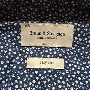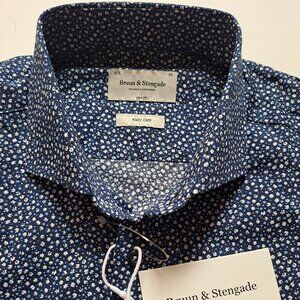 New Bruun & Stengade Men's Slim Fit Floral Button Down Blue Shirt Size 40