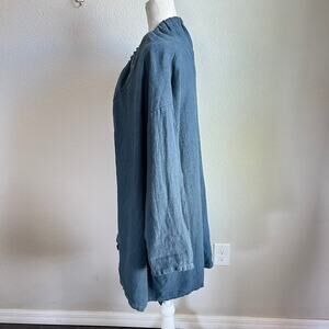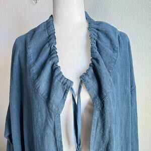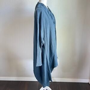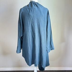 New Bryn Walker Lagenlook Linen Asymmetrical Open Front jacket Women's L Blue
