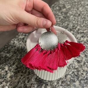 New Buckle Pink Boho Tassel Dangle Statement Earrings