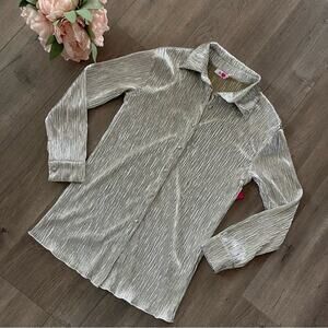 New Buddy Love Silver Metallic Pleated Button Down Blouse