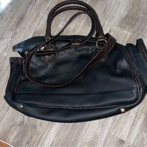 Faux leather with faux ostrich trim