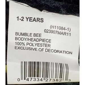 New Bumble Bee Halloween Costume Size 1-2 Years One Piece Black Yellow Dress Up