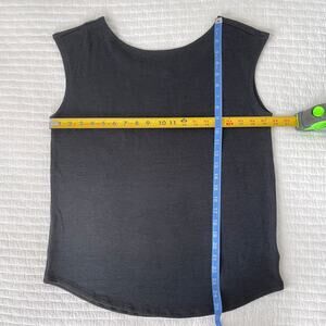 Features heather gray short sleeve top with keyhole tie at back, and black boat neck tank / short sleeve top. Measurements in images.