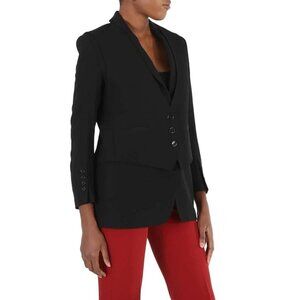 New Burberry Black Waistcoat Wool Tailored Jacket, Brand Size 4 (US Siz