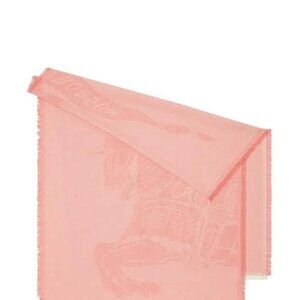 Burberry EKD Intarsia-Knit Scarf. This wool-cotton blend scarf features a rectangular shape, wraparound style, frayed edges, and is finished with the signature Equestrian Knight motif. Wool 66%, Cotton 29%, Cashmere 5%. Made in Italy.